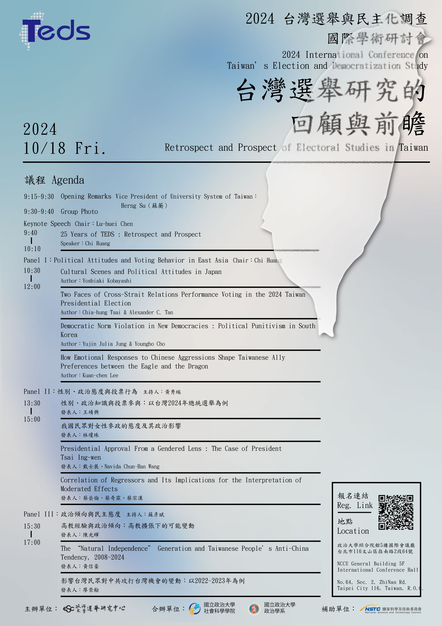 本計畫將於10月18日(五)舉辦『「臺灣選舉與民主化調查」2024年國際學術研討會』