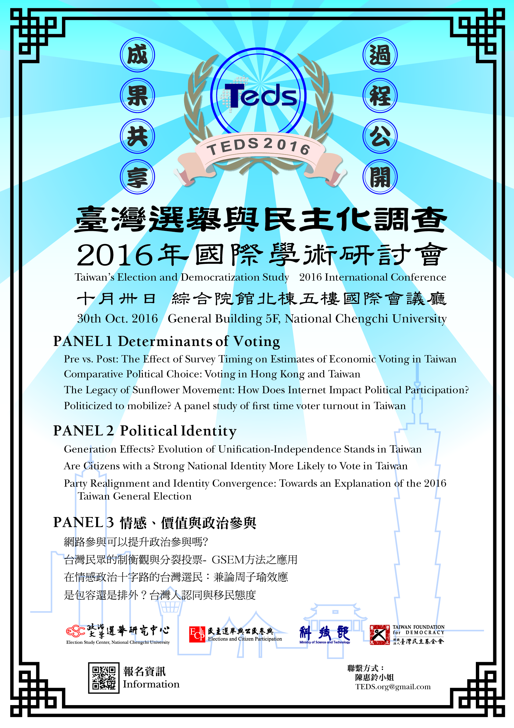 「『台灣選舉與民主化調查』2016年國際學術研討會」將於10月30日(日)舉辦